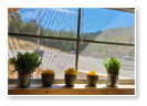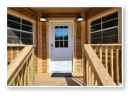 a picture from inside one of our cabins looking out over the pond