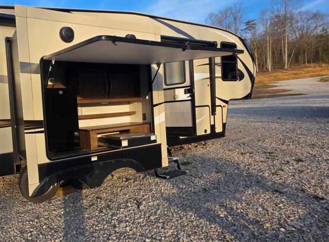 CAMPER RENTAL 2019 Cougar RKS Rental Camper at Tackett’s Hideaway Campground Enjoy the perfect mix of comfort and outdoor adventure in our 2019 Cougar RKS rental camper. Whether you're here to hit the trails or just relax by the fire, this camper gives you a clean, comfortable place to unwind after a day outside. Inside, you’ll find a spacious and cozy setup with everything you need for a stress-free stay. The camper comes fully stocked so you can pack light and focus on enjoying your trip. What’s Included: Fresh linens & towels Fully equipped kitchen with cookware and essentials Coffee maker Air fryer & griddle Basic kitchen utensils Outdoor grill for cooking Outdoor refrigerator Comfortable chairs for relaxing around the campfire Step outside and enjoy your own outdoor space—perfect for cooking, hanging out, and making memories under the stars. Located right at Tackett’s Hideaway Campground, you’ll have easy access to trails, riding, and all the fun the campground has to offer. Other Things to Note: No smoking No Vaping No pets This camper is perfect for couples, or anyone looking for a convenient and comfortable camping experience without bringing their own setup.