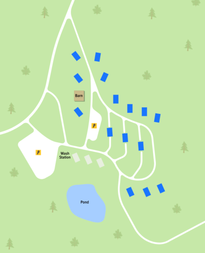 that are 70 to 120ft long with 20, 30, 50 amp service and rustic tent sites,