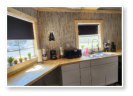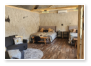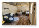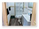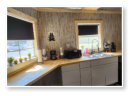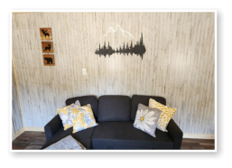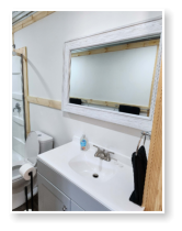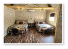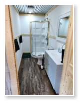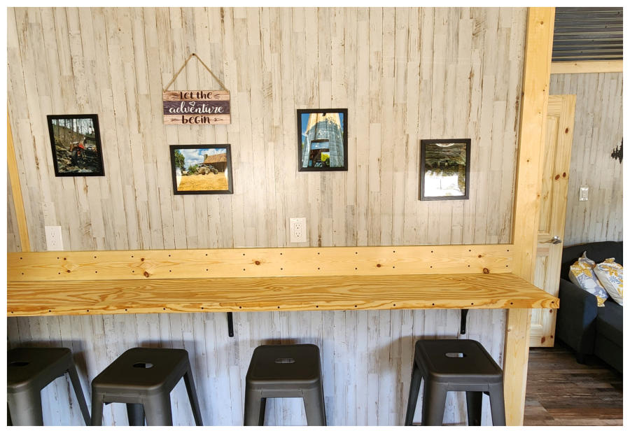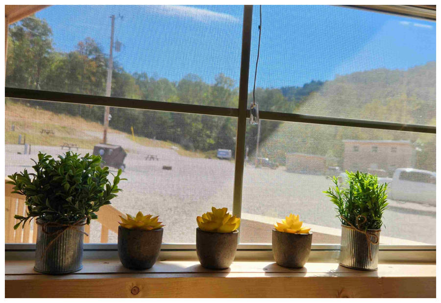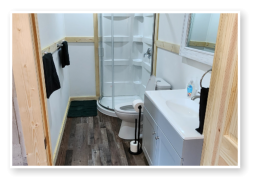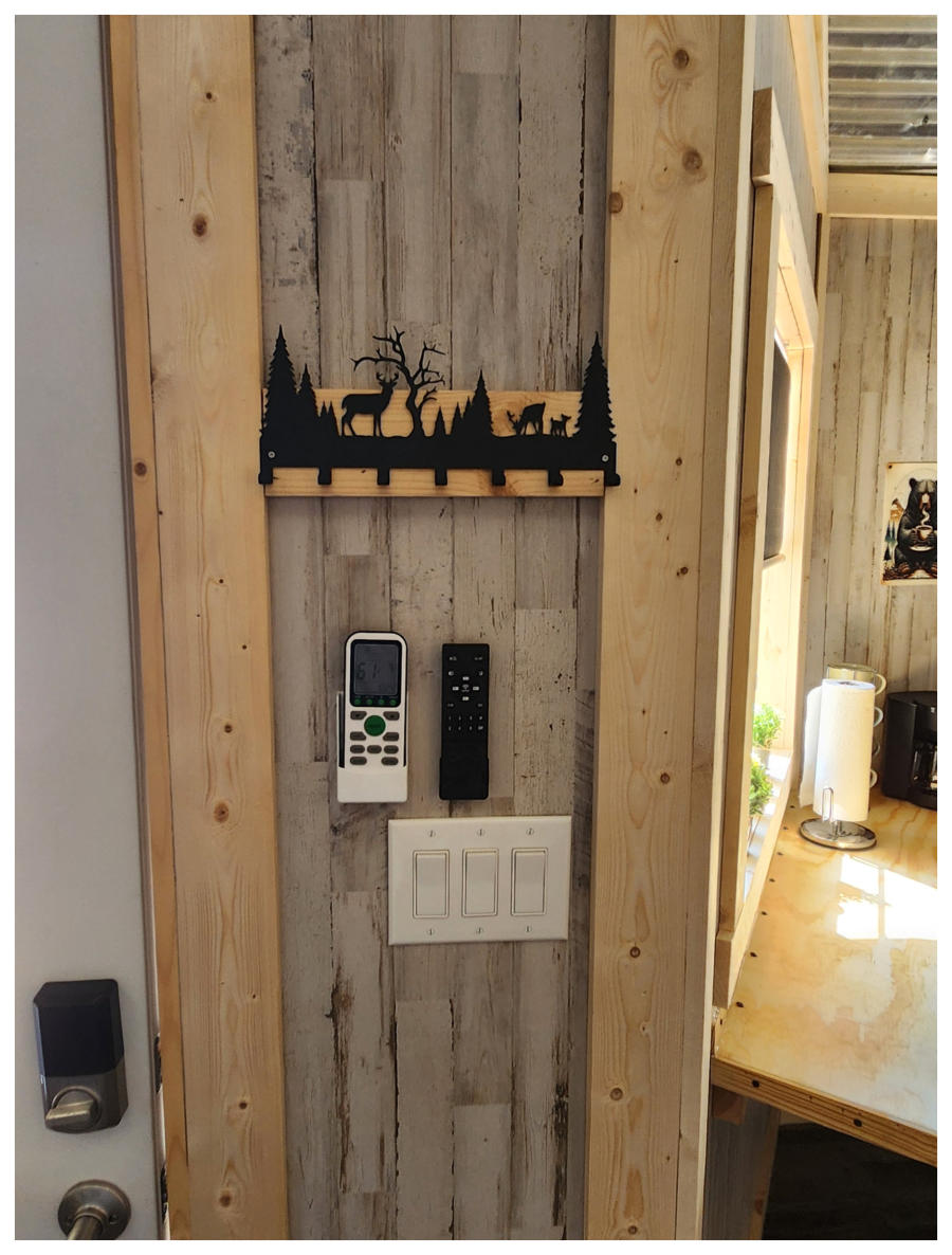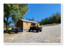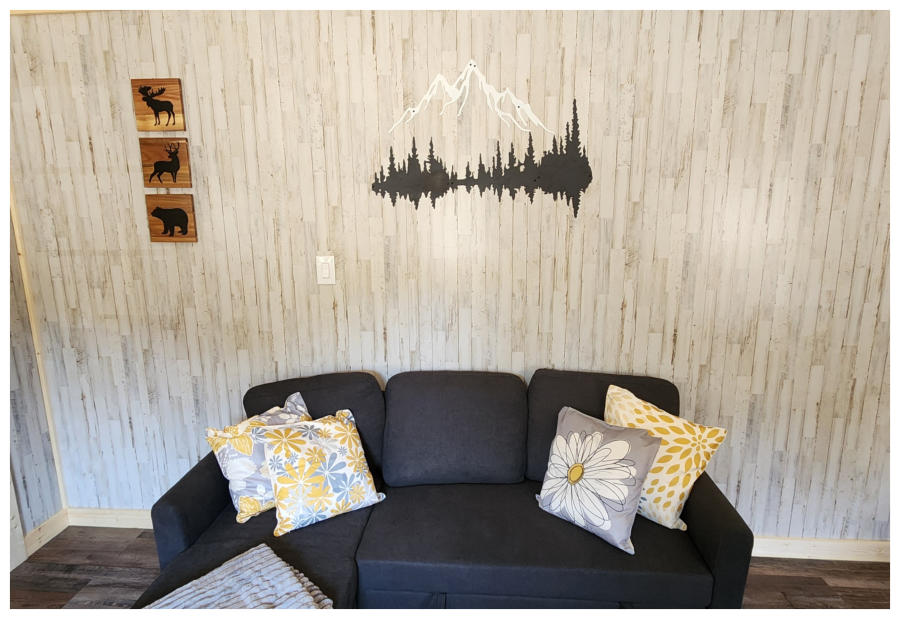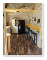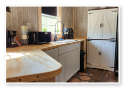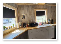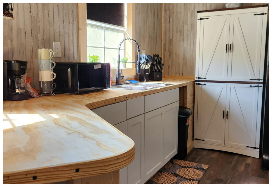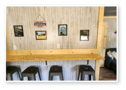 LiL Tackett Cabin (Sleeps 2-4)  •	Queen Bed & Queen Pull Out Couch  •	Bathroom With Full Shower and Linens •	TV •	Kitchen  •	Air Fryer •	Griddle •	Toaster •	Coffee Maker •	Microwave •	Refrigerator •	All Utensils